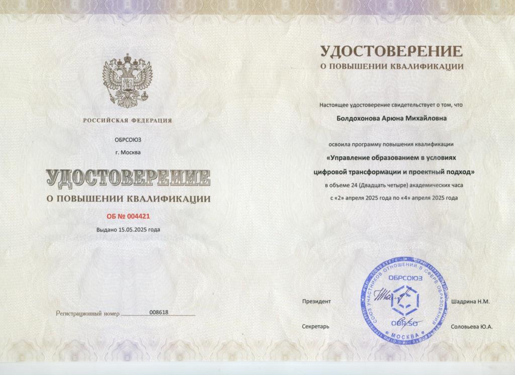 2025 г. — «Обрсоюз». «Управление образованием в условиях цифровой трансформации и проектный подход».