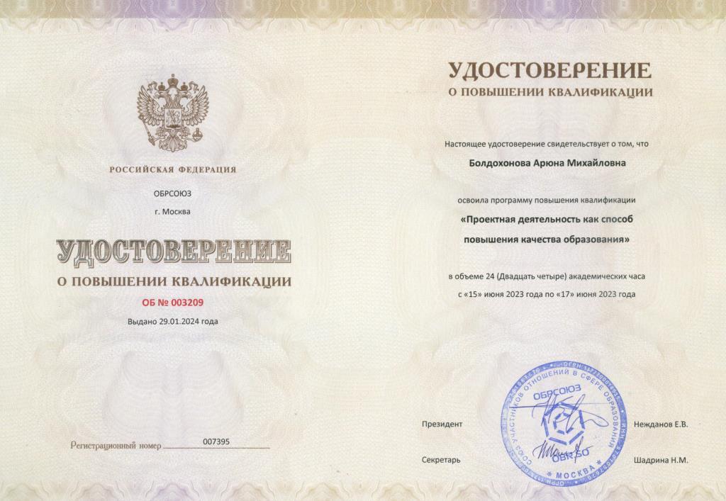 2024 г. — «Обрсоюз». «Проектная деятельность как способ повышения качества образования».